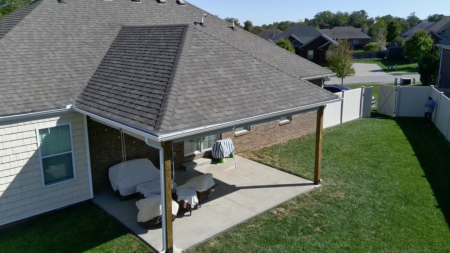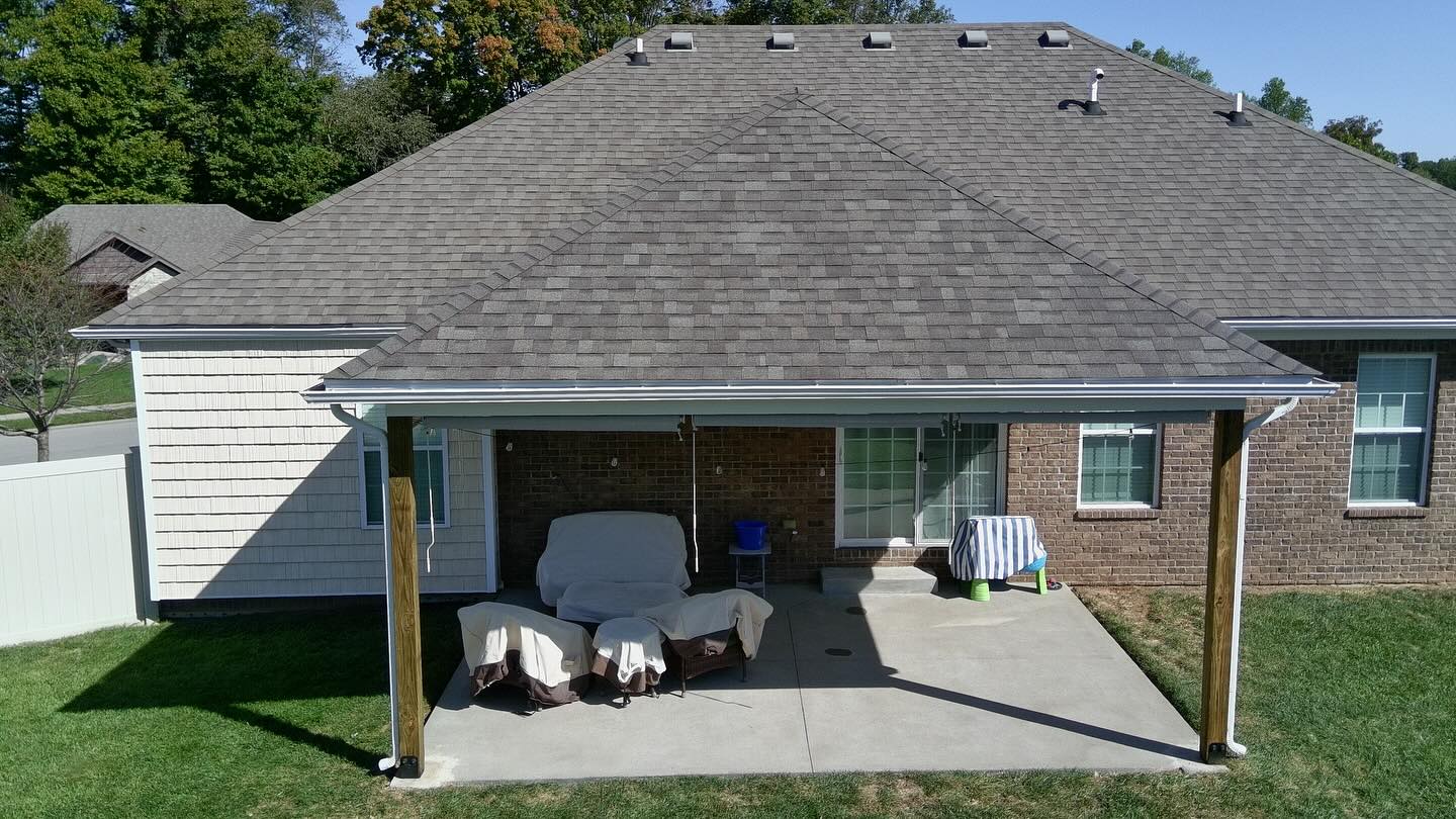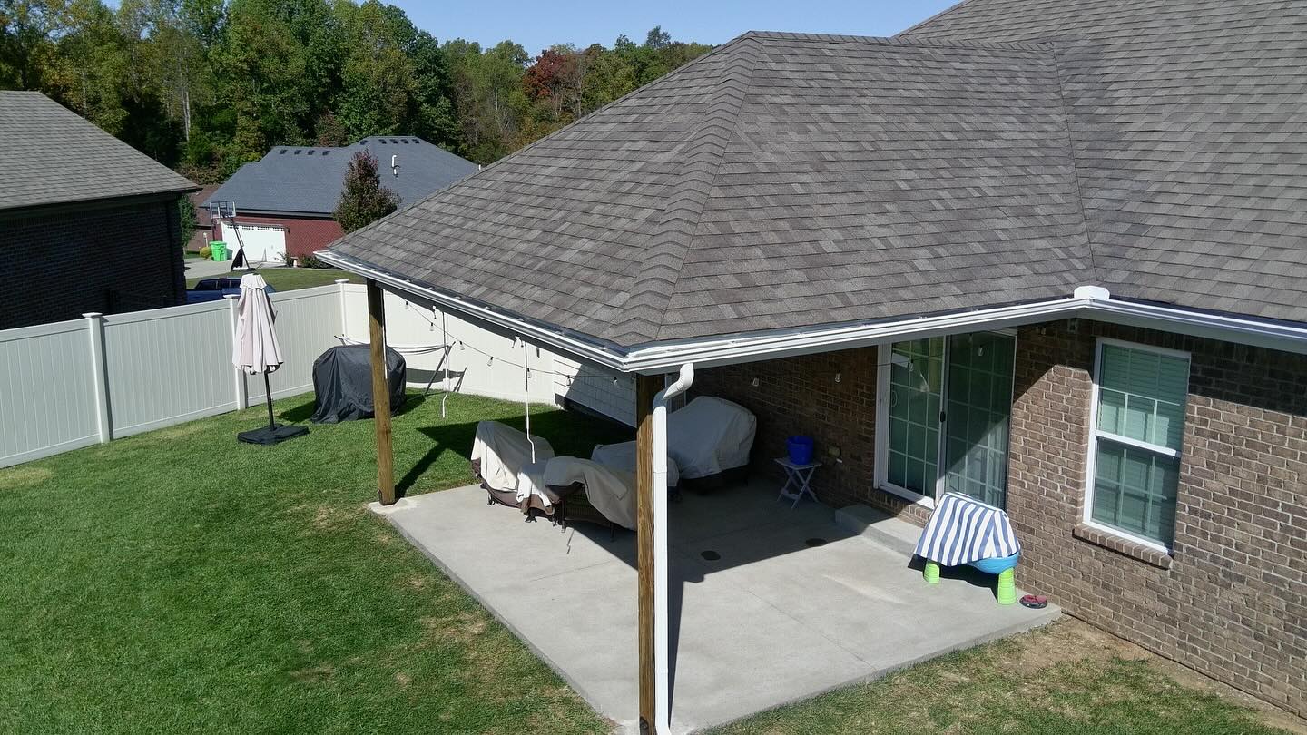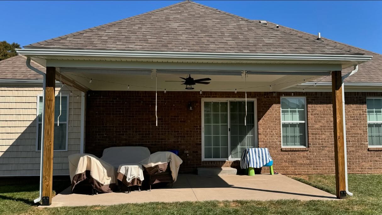 Underneath, we installed vinyl soffit ceilings, recessed lighting, a ceiling fan, and full gutter integration to complete the space and make it as functional as it is beautiful. This design adds year-round usability while providing a comfortable, shaded area for entertaining or relaxing outdoors.